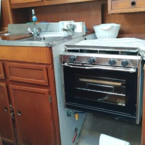 Cucina fuochi 3, forno, frigo pozzetto in acciaio, doccetta interna/esterna, Ancora 45 kg +1 rispetto, catena 90 mt, salpa ancore nuovo.
