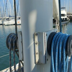 Timone a ruota, Randa steccata, Albero 2 in alluminio, Tangone, Winches 11, Vang idraulico, Yankee + trinchetta 2015, Sartie 2015, Tendi paterazzo idraulico.
