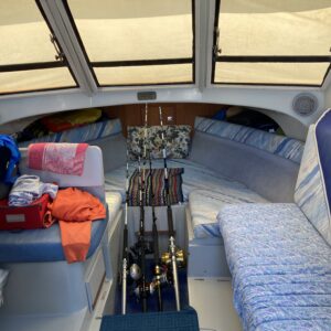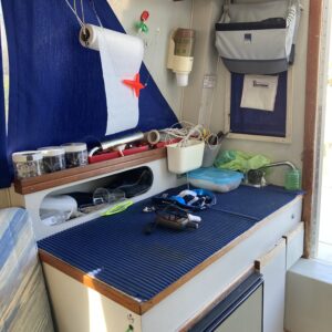 Cucina fuochi 3, frigo, impianto stereo, doccetta int/est, passerella, ancora, salpa ancora, catena, batterie 2×180 ah