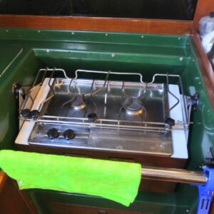 Radio, frigo + ghiacciaia, cucina fuochi 2, catena 40 mt, batterie 3 da 100 ah.