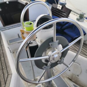 Timone a ruota, Fiocco, Trinchetta, Randa, Spinnaker, Avvolgifiocco, Vang rigido, Tangone, 6 winches, lazy bag.